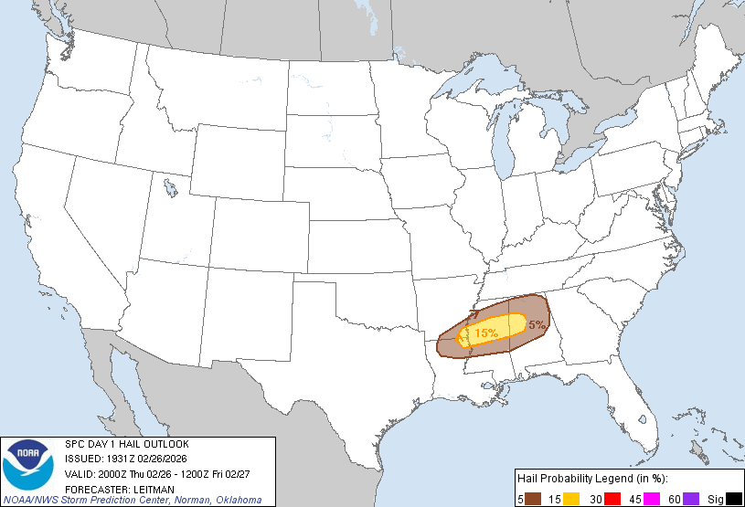 WWU082 That's why it's called a 'forecast' Weenies, I promise the Birmingham weather forecasters did not intentionally mislead you. So um. That wasn't supposed to happen. Let's recap. At about 3:20pm on Thursday, February 26th a storm formed over Gardendale. This was when the storm first received a Severe Thunderstorm Warning. This storm went on to product strong straight line winds in Pinson, and later a short-lived tornado in Trussville. And plenty of hail. ![]() Let's look at the radar: I don't usually get to show you current radar. We only ever cover models. How exciting. This is my personal favorite Weather Weenie radar, GR2Analyst. You can see it kind of hook around on the far southwestern corner, but every storm that day was trying to. Looking at the velocity, the tornado had to spin up between scans. There are no indicators of anything but straight-line winds. ![]() What about the hail? That was the most interesting part until the tornado happened. Here is the hail core of the storm. Still pretty wild for us. We had a 5% chance of hail from the SPC that afternoon. ![]() I want to look at all of the products for the day. These are all the latest products produced for that day. Issued just before the tornado dropped. (About an hour if we want to be specific) First is hail. ![]() Then wind. ![]() Then tornado. ![]() And the overall convective outlook. ![]() So as you can see, there shouldn't have been any tornadoes. But there was one. And it was where we are. That's why it's important to stay weather aware, especially of the conditions where you currently are. A forecast is the future. A window is now. If it looks bad, go inside and get away from windows. A few more notes because Facebook has made me want to cry lately.